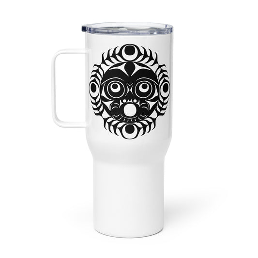 "Sun Mask" Travel mug with a handle